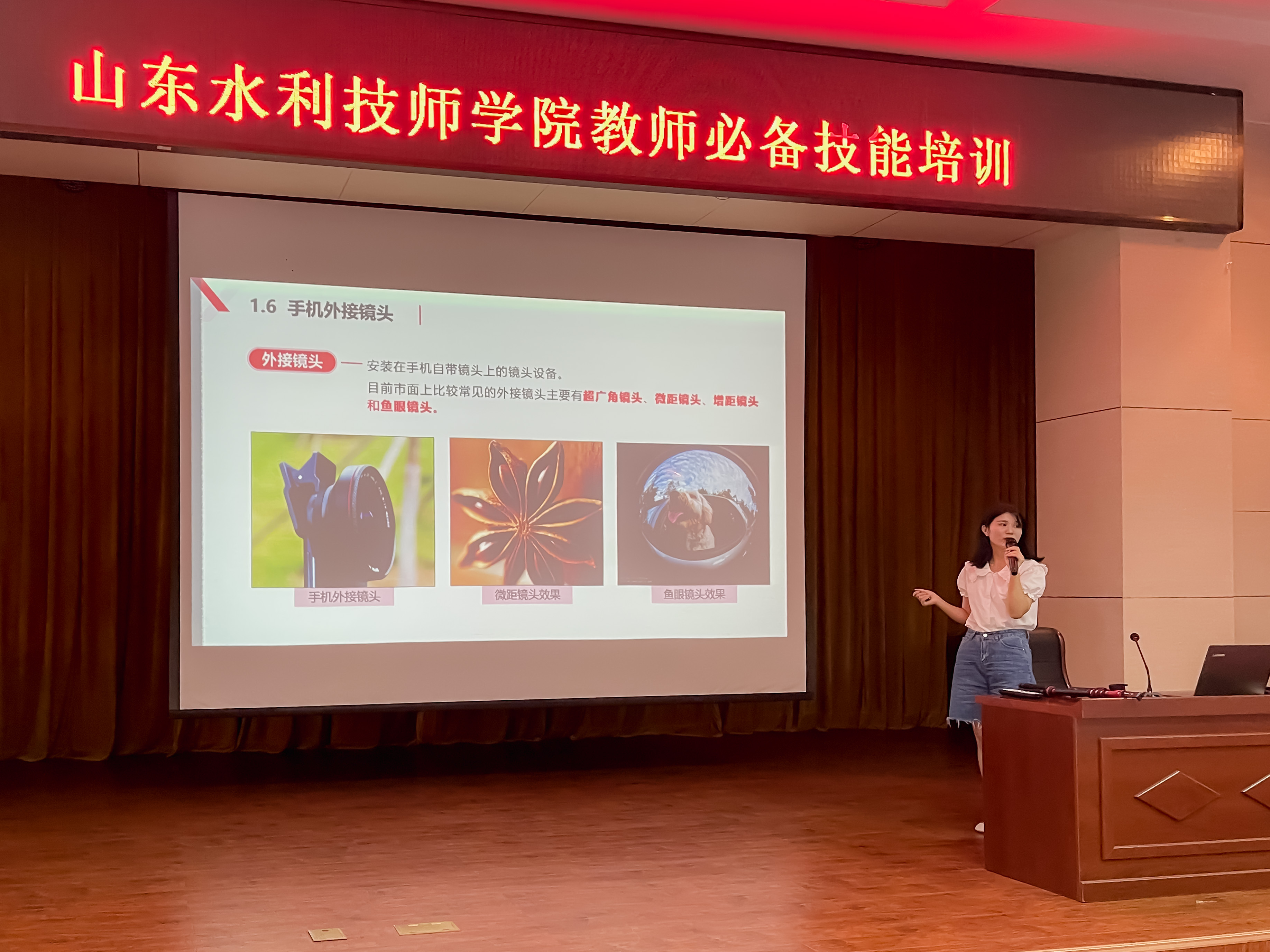 宣传部高光媛老师着重为大家讲解了手机拍摄照片和视频的方法,从如何选取拍摄角度、调光、配色等方面,详细解读了如何拍才能达到更好的效果,才能让作品更出彩。杨敏老师和鹿建国老师会同讲解了Adobe Premiere Pro(视频编辑软件)的操作规程,并通过现场实操的形式,有序指导老师们熟练运用剪辑软件,传授剪辑技巧。