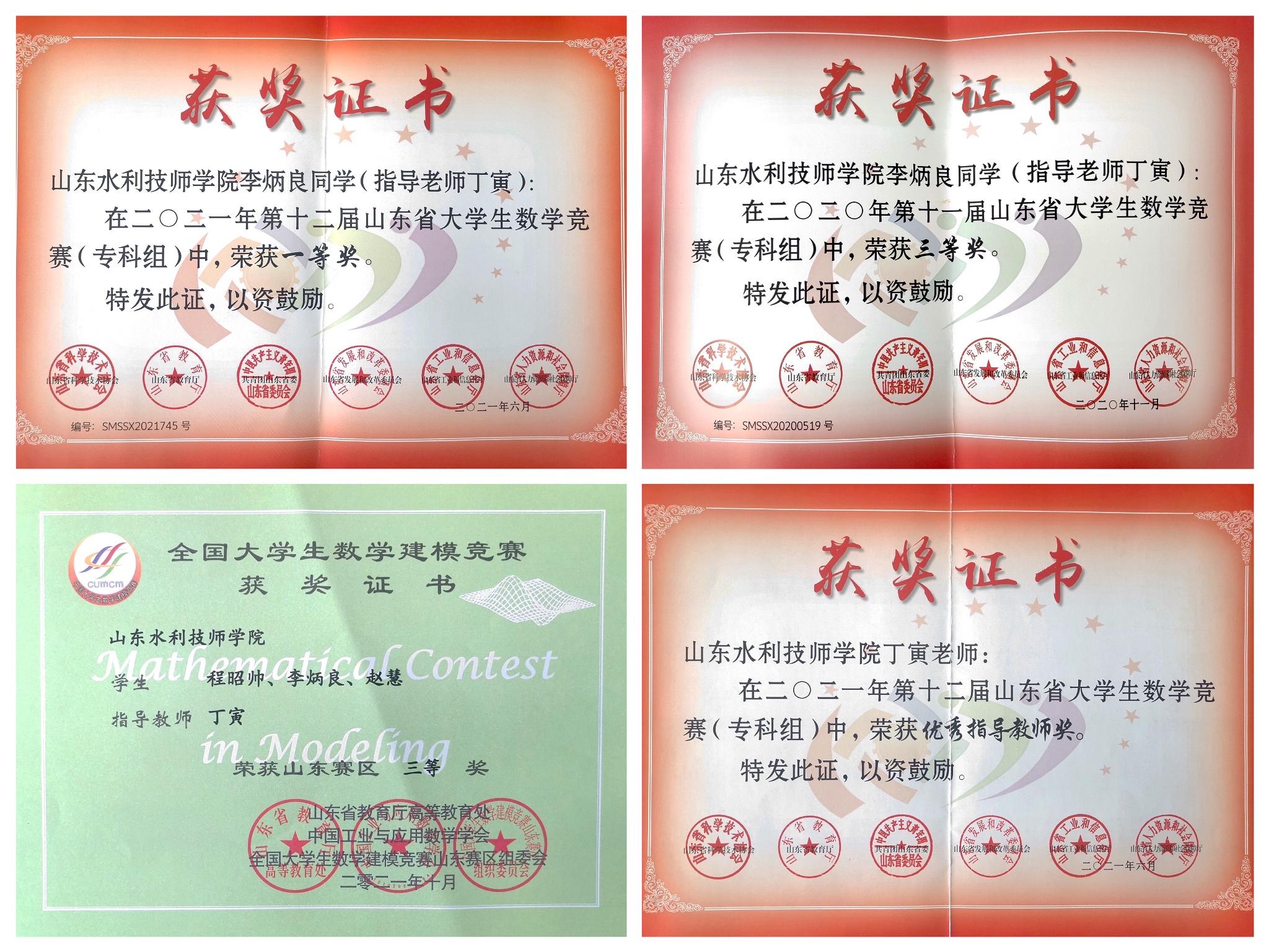 因为备赛比较充分,去烟台山东商务职业学院参加总决赛时,我们信心满满。“机会总是留给有准备的人。”最终,我们不负自己,不负学院,李炳良和另一位同学一举斩获两个“一等奖”,取得了历史最好成绩,实现了学院在数学竞赛方面新的历史性突破。