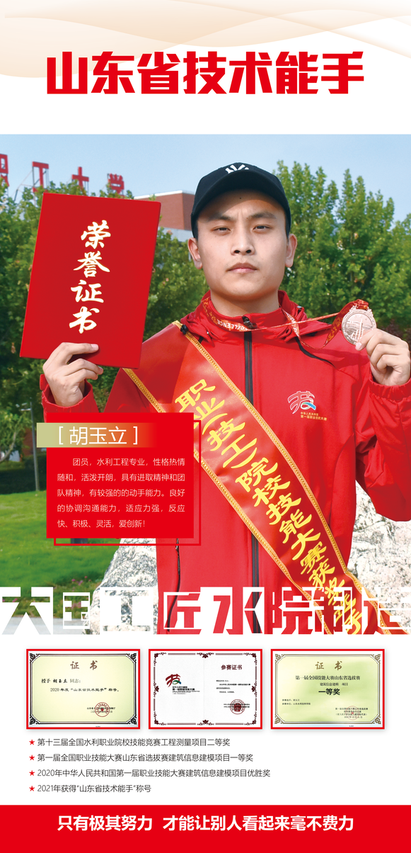 他,就是胡玉立,系山东水利技师学院水利工程系2015级学生,当之无愧的水院“宝藏男孩”。