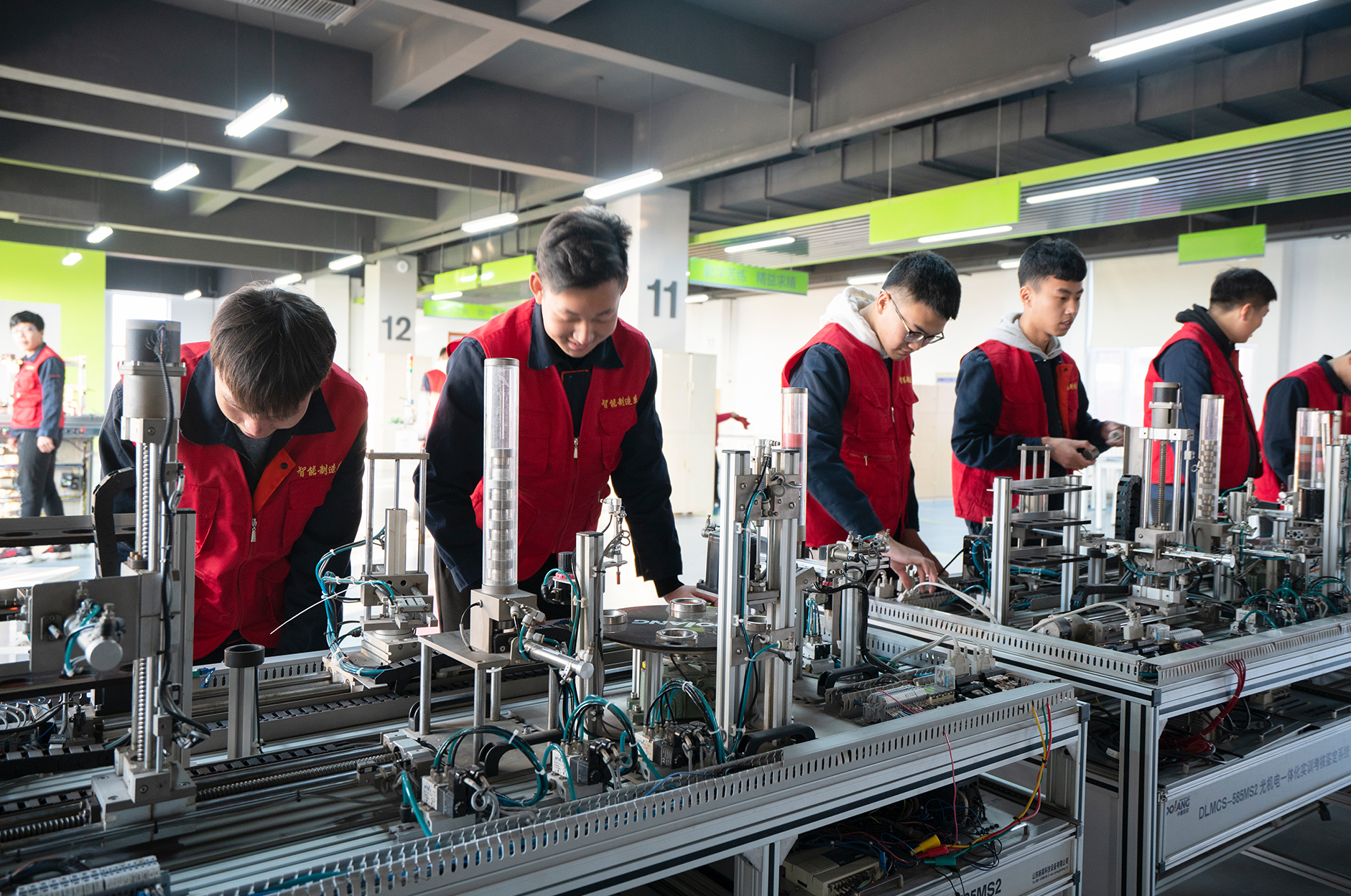 一体化教学中,教师要注重典型工作任务的确定,设计学生感兴趣的工作任务,培养其学习能力与综合技能。在电气控制教学中,关于PLC控制电路的外部接线图的学习,既是重点,也是难点。由于电气元器件繁杂,同时还涉及到传感器等方面的知识,单纯地讲解此部分内容,学生很不容易理解,所以要在试验台的接线环节上下工夫——电路经过哪个元器件,它们的作用是什么,都要通过接线来显示。以此为抓手,在教师引导下加强实操,有效激发学生们的学习兴趣,建立学习自信,专业知识与技能大幅提高。而且,经过多次、多个接线图的接线,学生们发现PLC控制系统的外部接线图原理是相通的,能够触类旁通,从而接线速度越来越快,正确率皆达到百分百,教学效果自然水到渠成。