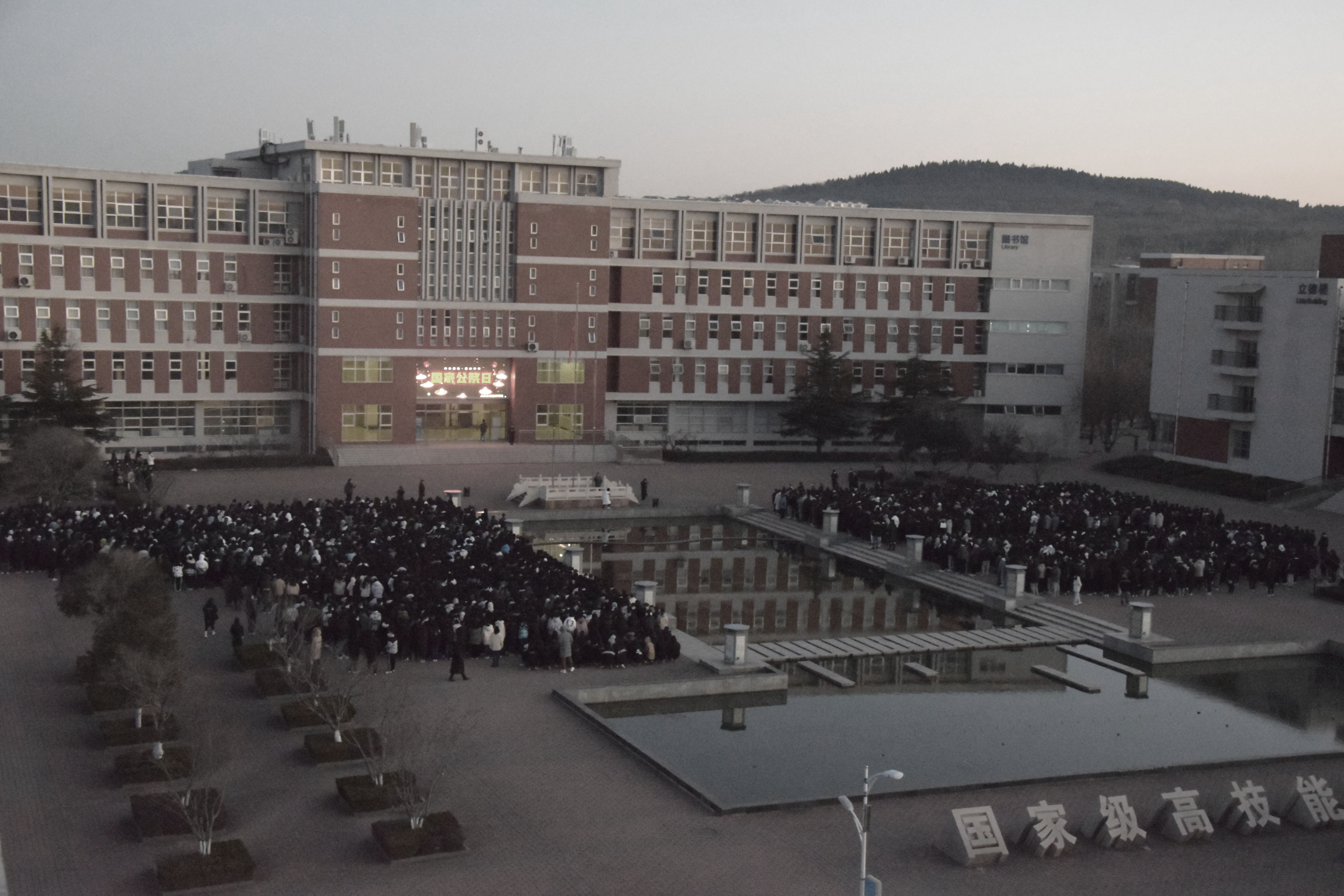 2021年12月13日,系第八个南京大屠杀死难者国家公祭日。山东水利技师学院在至善广场举办了以“勿忘国耻 振兴中华”为主题的国家公祭日教育活动,旨在引导全体师生牢记历史深重灾难,以更加昂扬的姿态、饱满的热情,深植爱国情怀,挺起时代脊梁。