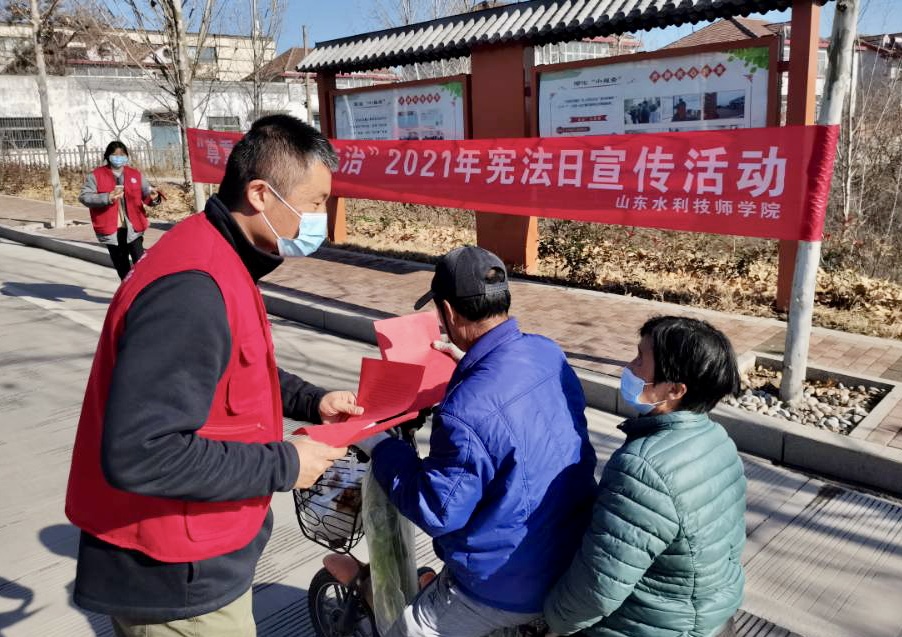 今年12月4日是第八个国家宪法日,也系第四个“宪法宣传周”,近日,山东水利技师学院组织开展了以“以习近平法治思想为指引 坚定不移走中国特色社会主义法治道路”为主题的2021年国家宪法日宪法宣传周暨山东省法治宣传教育月系列活动。