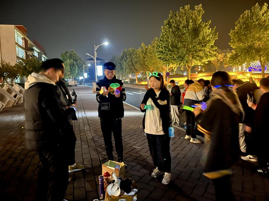 10月24日晚,该系新能源专业的同学们齐聚至善广场,在环校2公里路线起点处领取了荧光道具。随着发令枪鸣响,同学们迅速冲出起跑线。夜色下、光影中,身着荧光装备的同学们团结一心,奋力向前,形成了一道流动着的亮丽风景线。大家没有排名之分、无速度之争,每一个夜跑的人都是夜空中最亮的星,燃放着活力,用青春点亮了水院的夜空。