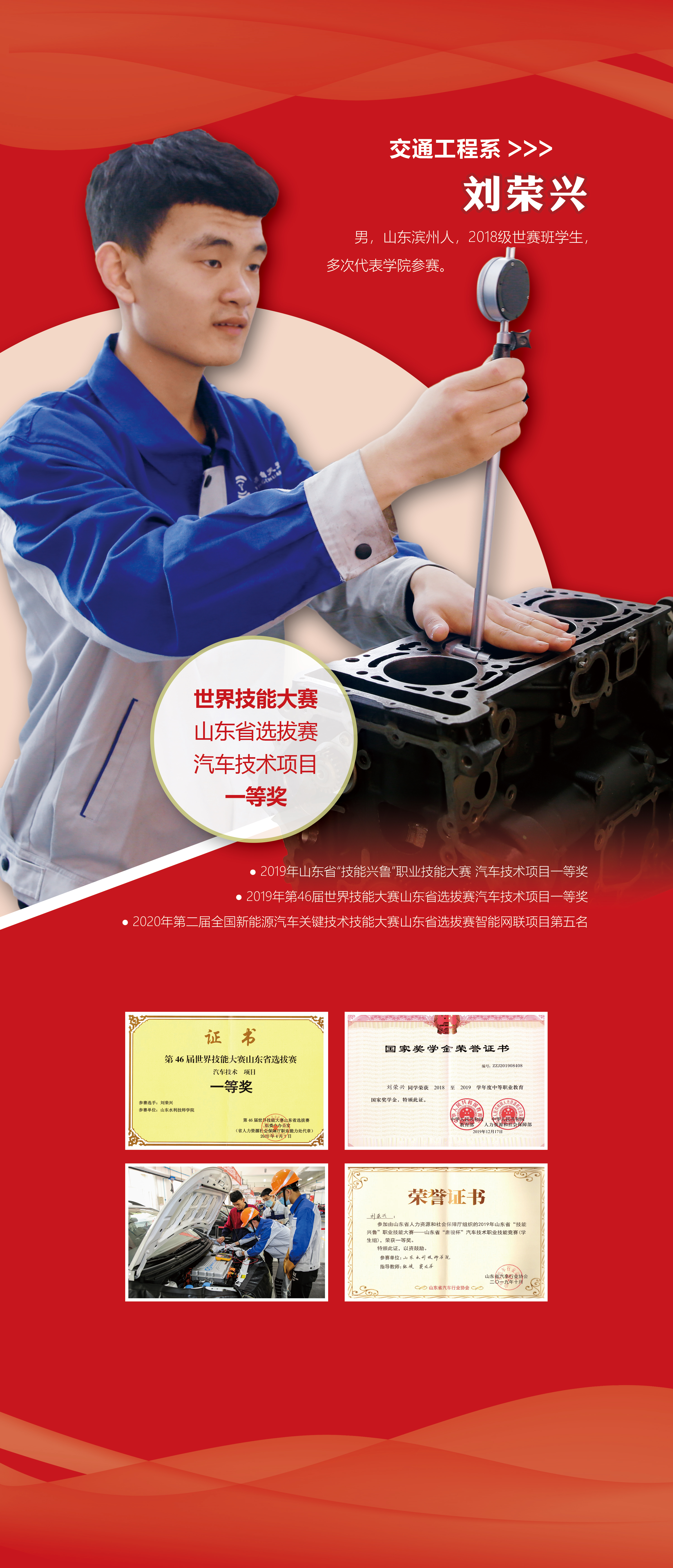 刘荣兴,山东滨州人,2018级世赛班学生。多次代表学院参赛。主要成绩如下: