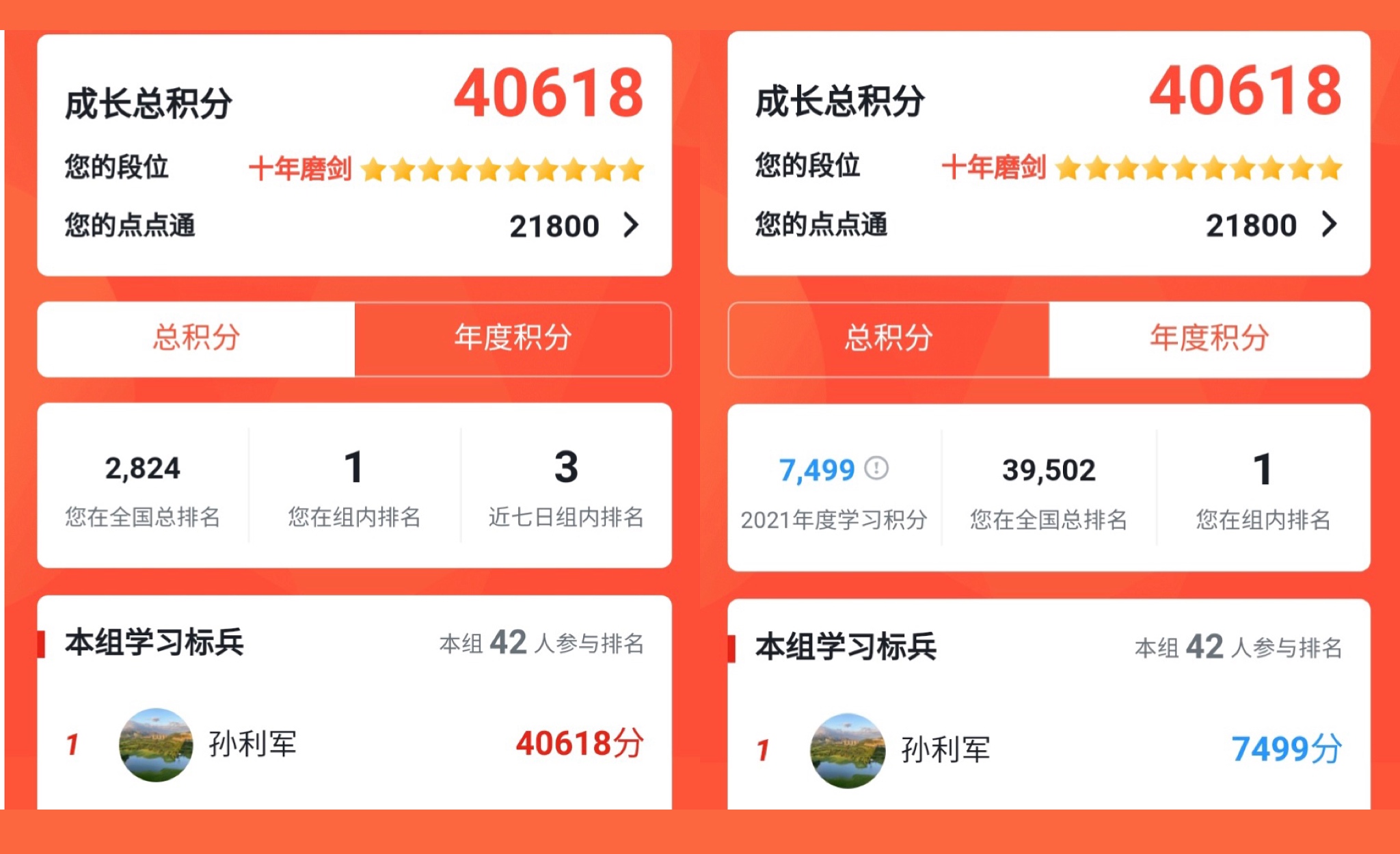 2019年1月1日,“学习强国”学习平台在全国上线。平台上线2年多来,我每天坚持学习,截至5月24日,我的学习总积分位列全国第2824名,本年度学习积分也遥遥领先。