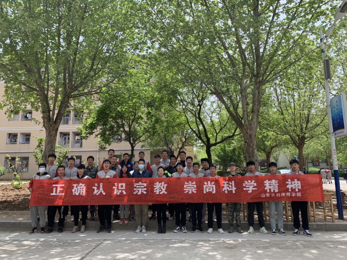 4月27日中午,山东水利技师学院学生工作处组织开展了以“正确认识宗教 崇尚科学精神”为主题的宣传教育活动,通过宣读倡议书、签名等形式,积极引导广大师生树立正确的民族宗教观,进一步提高他们的法律意识,使反邪教宣传和宗教政策法规知识宣传齐头并进,有力助推平安校园建设。