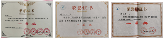 “一路走来,我经历过挫折,也收获了成绩和感动。”胡玉立回忆2016年第一次参加技能大赛集训时,他的参赛之路并不是一帆风顺。由于之前没有经历过大赛历练,心理素质不强,最终没有成为参赛选手。但他并没有灰心,暗自下定决心,要坚持下去。在老师的谆谆教导和鼓励下,他以更加积极乐观的心态去面对训练和比赛。在反复训练和比赛的打磨中,技能水平逐渐得到了提升,心理素质愈加成熟,坚持与不服输的性格让他很快脱颖而出,绘图速度大幅度提升,还成为小有名气的“快手胡”。终于在2017年争取到第一次参加全国水利职业院校技能大赛的机会。年仅17岁的他,作为全场年龄最小的选手,顶住压力、沉着应战,取得了水利工程CAD项目全国一等奖的优异成绩。2018年,经过技能集训及大赛的历练,他早已成长为一个技能娴熟、阳光自信的少年,专注力、逻辑思维力和发挥稳定性得到有效的提升,再次披挂上阵,一举夺得全国水利职业院校技能大赛水利工程成图技术项目一等奖,作为自己18岁的成人礼。连续两年获奖的胡玉立并未有半点骄傲与自满,继续拓展自己的专业领域,向新的高峰发起挑战。2019年,胡玉立申请转入工程测量集训队学习。测量项目对他来说是个全新的领域,他找到指导教师坚定地说:“老师我想试试,我是冲着学技术来的,我不怕吃苦,会全力以赴,就算没有争取到参赛资格,也决不后悔。”在测量竞赛训练期间,他坚持每天早晨五点半就起床训练,挤出时间学习专业知识,强化专业技能。功夫不负有心人,2019年在第十三届全国水利职业院校技能大赛中夺得工程测量赛项二等奖。
