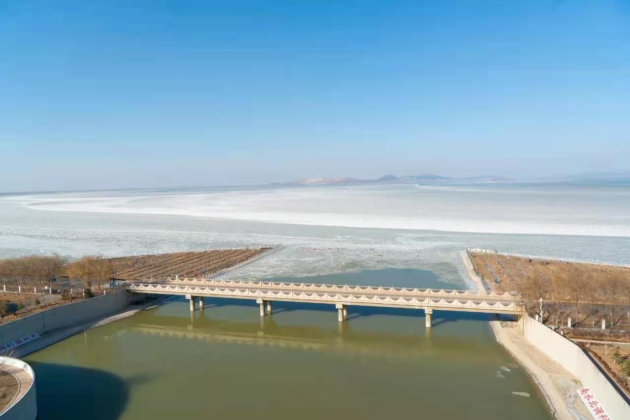 在泵站的顶楼上,俯瞰东平湖的阔大无垠。冬日的东平湖静水潜流,冰面青澈,湖天相接。芦苇随风摇曳,鸟儿展翅翻飞。阳光之下,闸门出水口,有一群群的小鸭子悠然游弋,如点缀的闪闪的黑宝石。源源不断的水流,形成了这片未结冰的水面,成了它们的栖息乐园。气象局预报说当天是多年来最寒冷的一天,寒风也挡不住这些小生灵的欢快。看到这些,又禁不住想象东平湖的春日绿绦拂堤,夏日烟波浩渺,秋日的果实飘香,一年四季的东平湖,想想就很神往了。