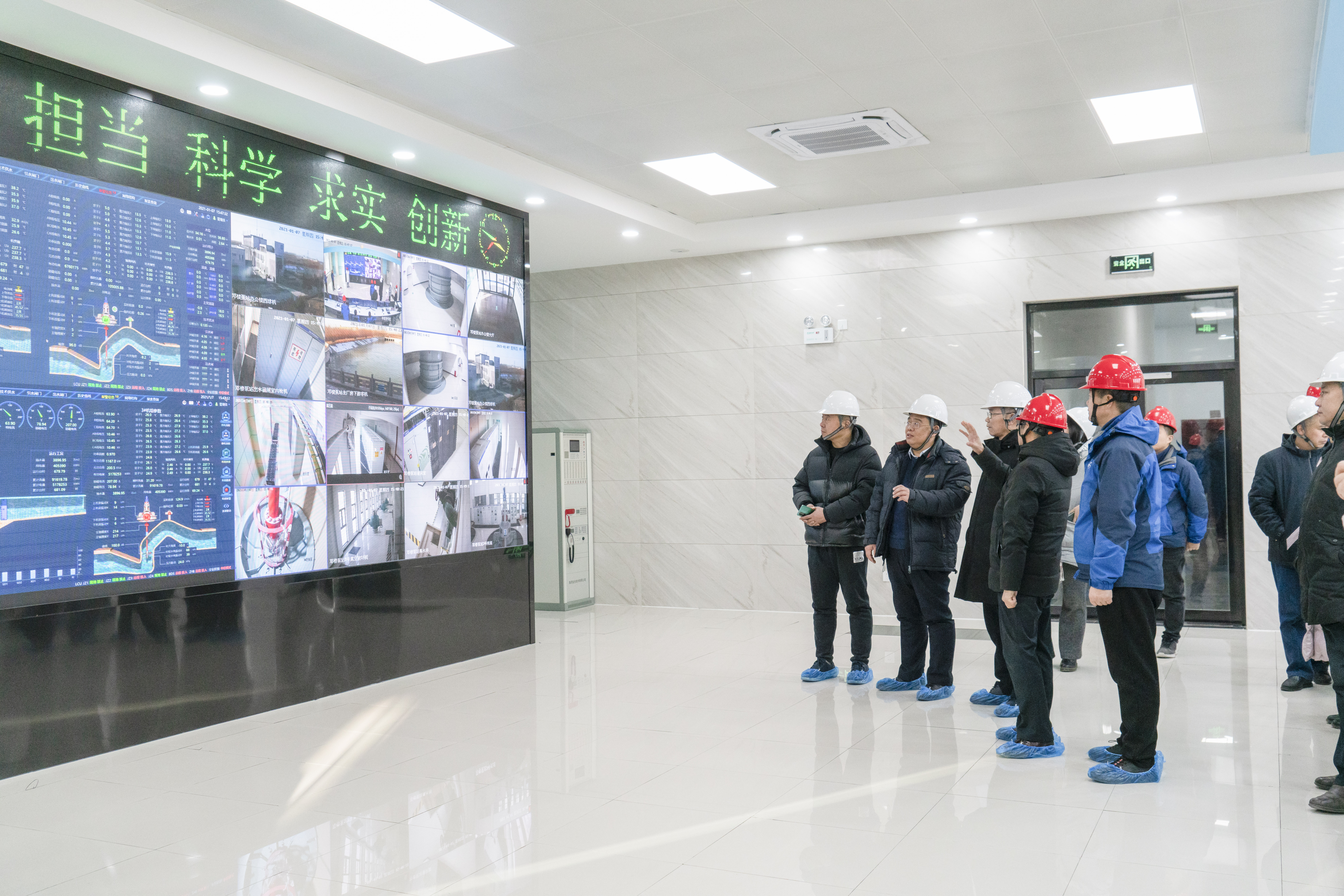 在邓楼泵站,有一个线缆柜子吸引了我。这个柜子里是密密齐整的线缆,如梳子精心梳理过一样,根根清晰,每一根上都标注了编号、起点、终点和型号信息,附有专属二维码,全部实现了信息化控制。这个柜子仅是这个项目的冰山一角。据了解,这个泵站信息化升级改造项目是今年7月~10月完成的,只有三个月的工期,10月就要调水了,工期非常紧张。干还是不干?不干没有风险,干就要如期高质量完成任务,不能影响调水。马存兵局长说,为保证项目的完成,邓楼泵站水利人用“670”工作制,早上6点上班、晚上7点下班、没有休息日,赶在调水指令下达之前,把项目全部完成了。他谈起这个过程,轻松中含着坚定。这不就是担当与创新精神的体现吗?