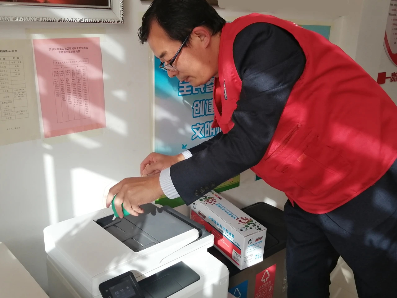 10月21日下午,信息技术系支部志愿服务队的志愿者们走进淄川区凤凰山社区,开展“崇老敬老 情暖重阳”主题志愿活动,在为老人送上节日祝福的同时,帮助社区维修、维护办公设备,共度温馨快乐的重阳节。