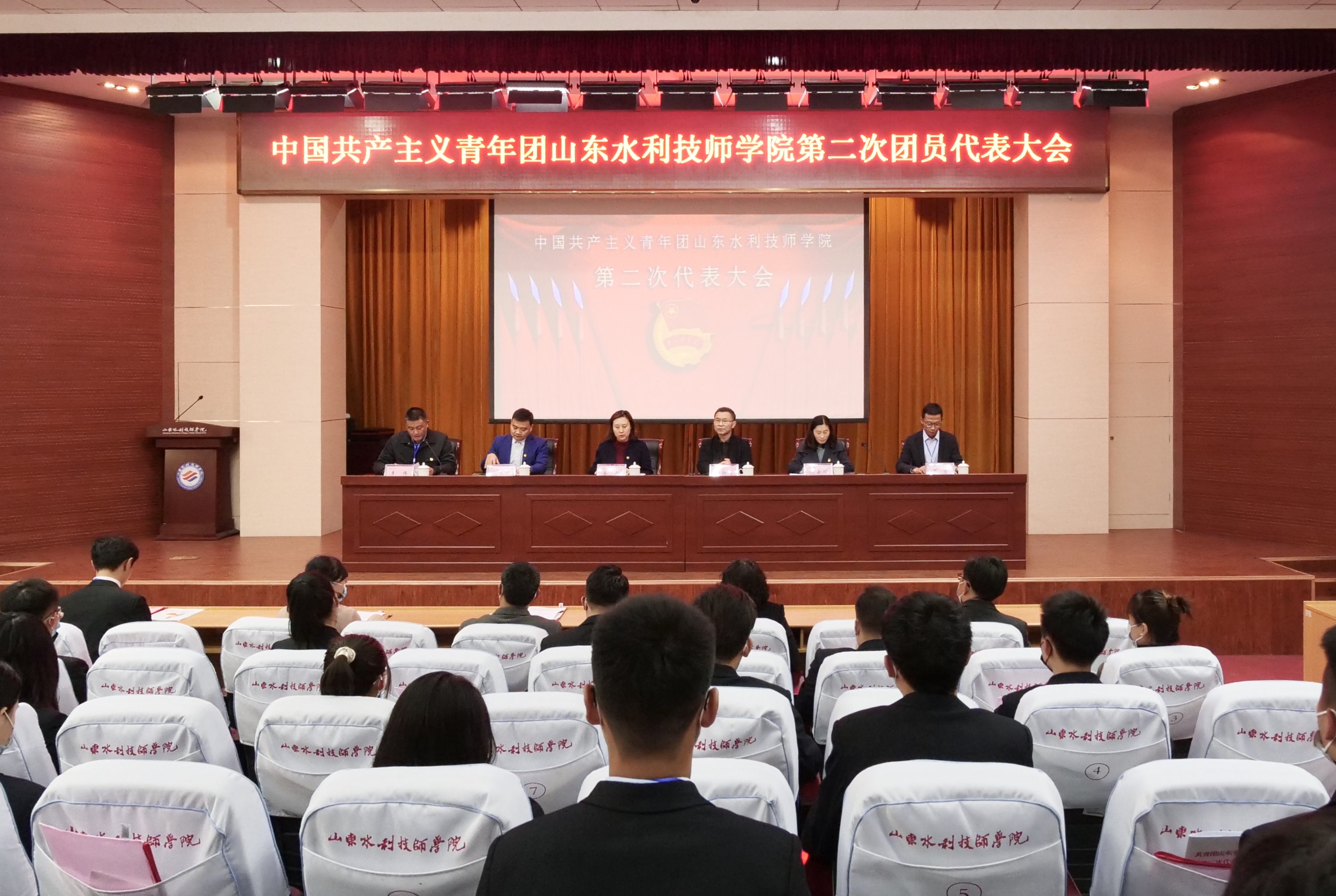 风正扬帆正当时,勇做时代弄潮儿! 11月14日,共青团山东水利技师学院第二次代表大会在学院学术报告厅召开。共青团淄博市委副书记宋玲、学少部部长刘文才;学院纪委书记赵新运、工会办公室主任丁莹、学生处处长穆云丽出席会议。学院全体团代会代表、教师代表和优秀学生代表共120余人参加会议。