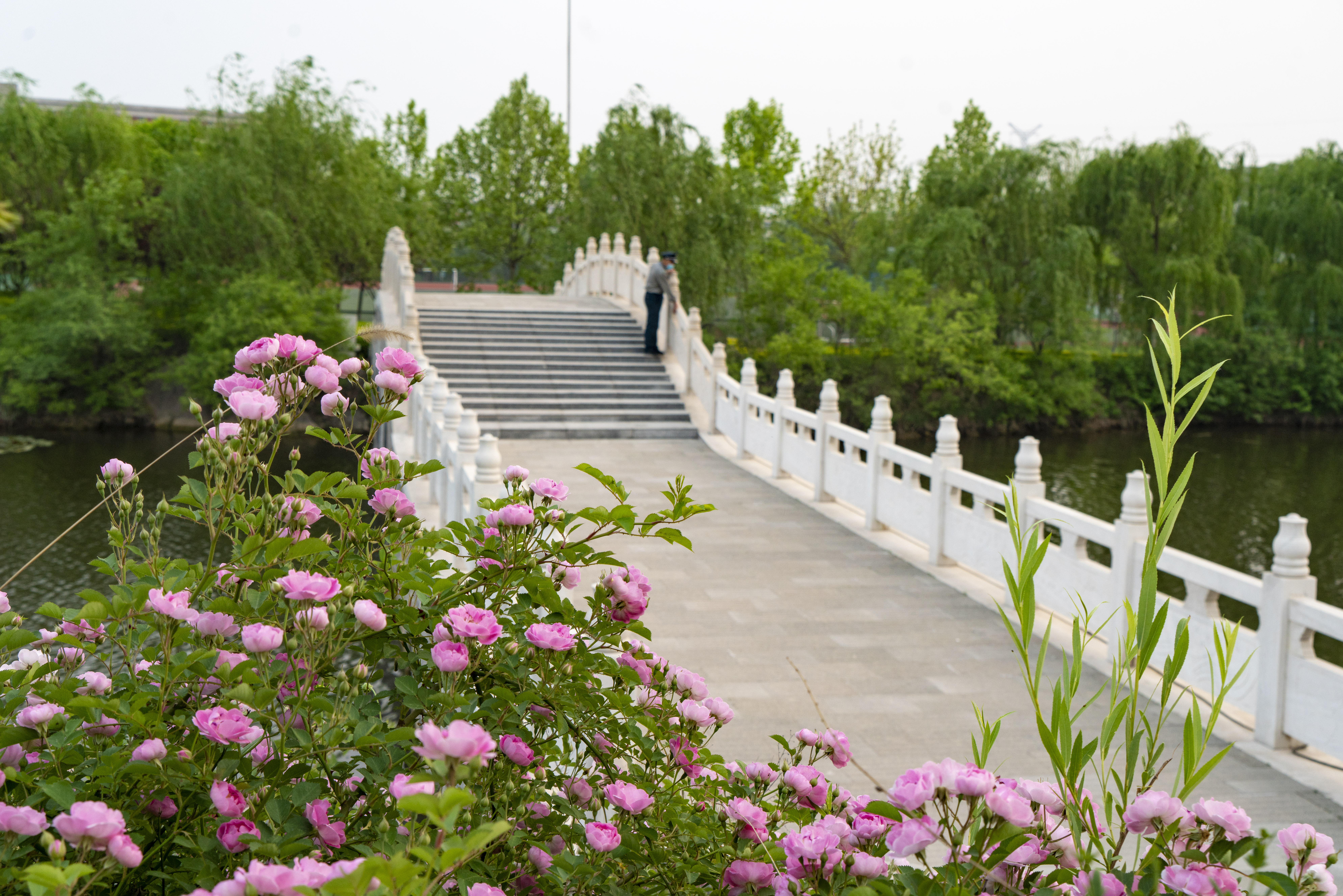这条河年年行走,日日目见,眼里是河间起伏的四季变换景致,心中是留存的细致忆念。春日河水浮新翠,挺拔的蒹葭枝杆串出水面,细劲的剑叶在河中纵横挥舞,风姿拟竹,凛凛然。春风起微澜,漾开层层水波,没入芳草萋萋处。最壮观的是陶然桥两岸红粉蔷薇盛开时,坡岸爆燃,华彩丛生。安静繁盛的蔷薇,仿佛满腔热情地在等一人归来,当是少年归来——校园的少年,曾经的年少。