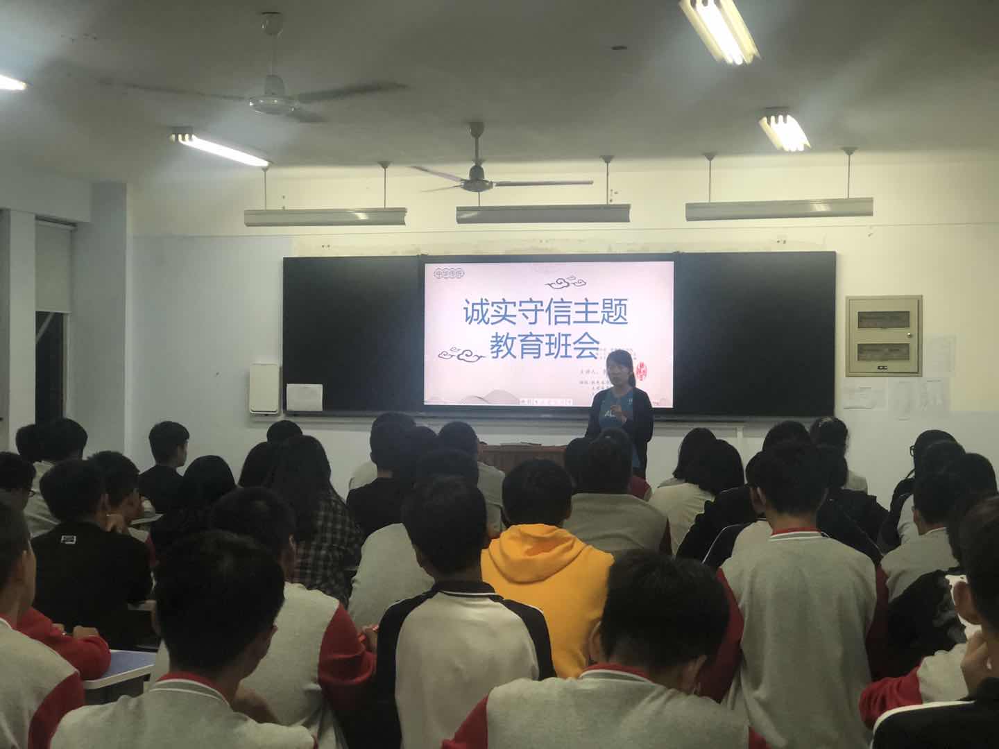 活动期间正值师生下课,不少学生听到宣传后,积极地在横幅上签下了自己的名字。还有很多同学结合活动主题,讲述了自己的亲身经历,并承诺以后一定要做一个讲诚信的人,遵从一定的规则,有章必循,有诺必践。结合这次活动,学生处还组织开展了“诚信主题教育班会”活动。辅导员从待人处事、诚信校园、道德规范等方面,为学生们讲解了诚信的重要性,同学们听得非常认真,在参与的同时心灵上感受着道德的熏陶和引导。