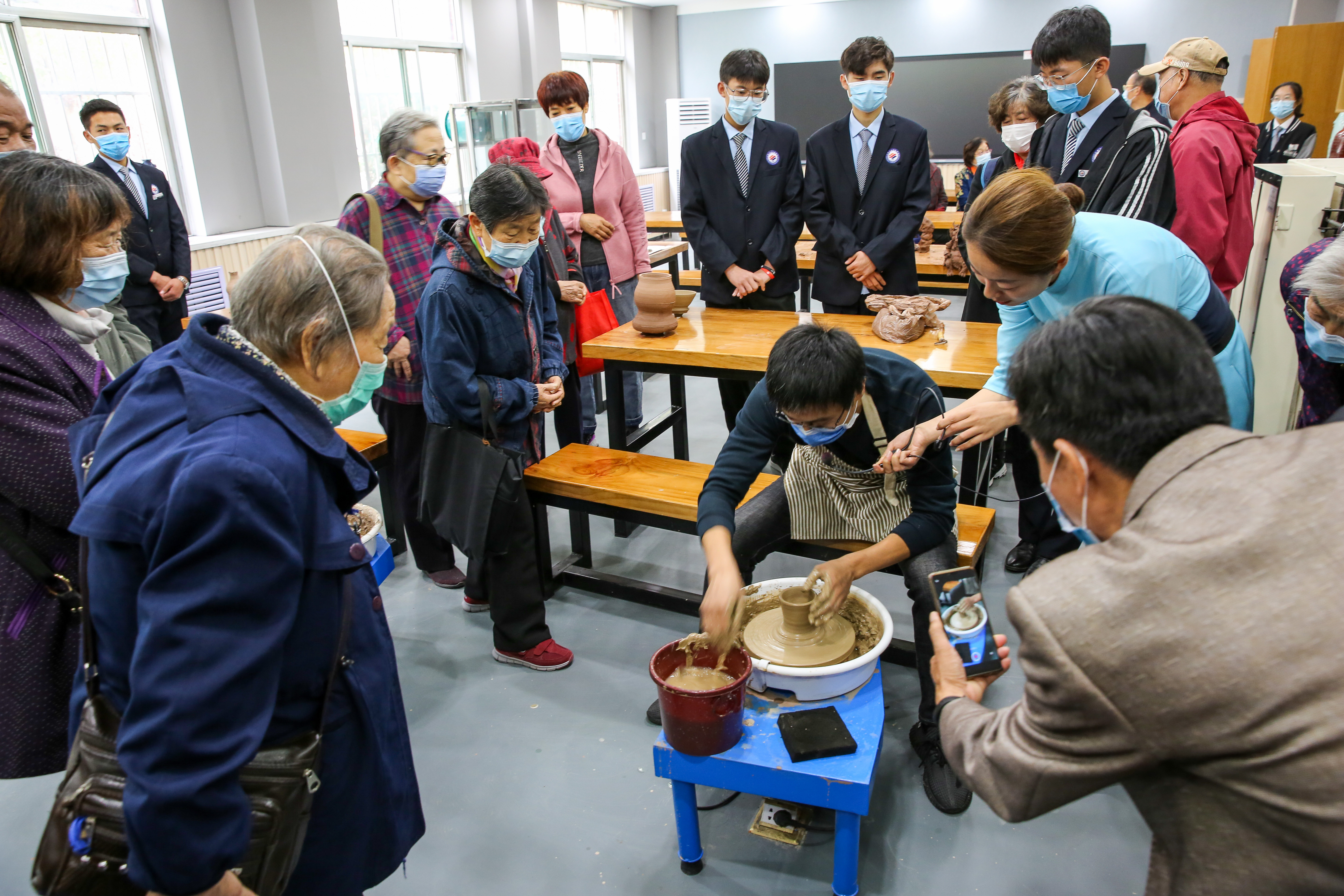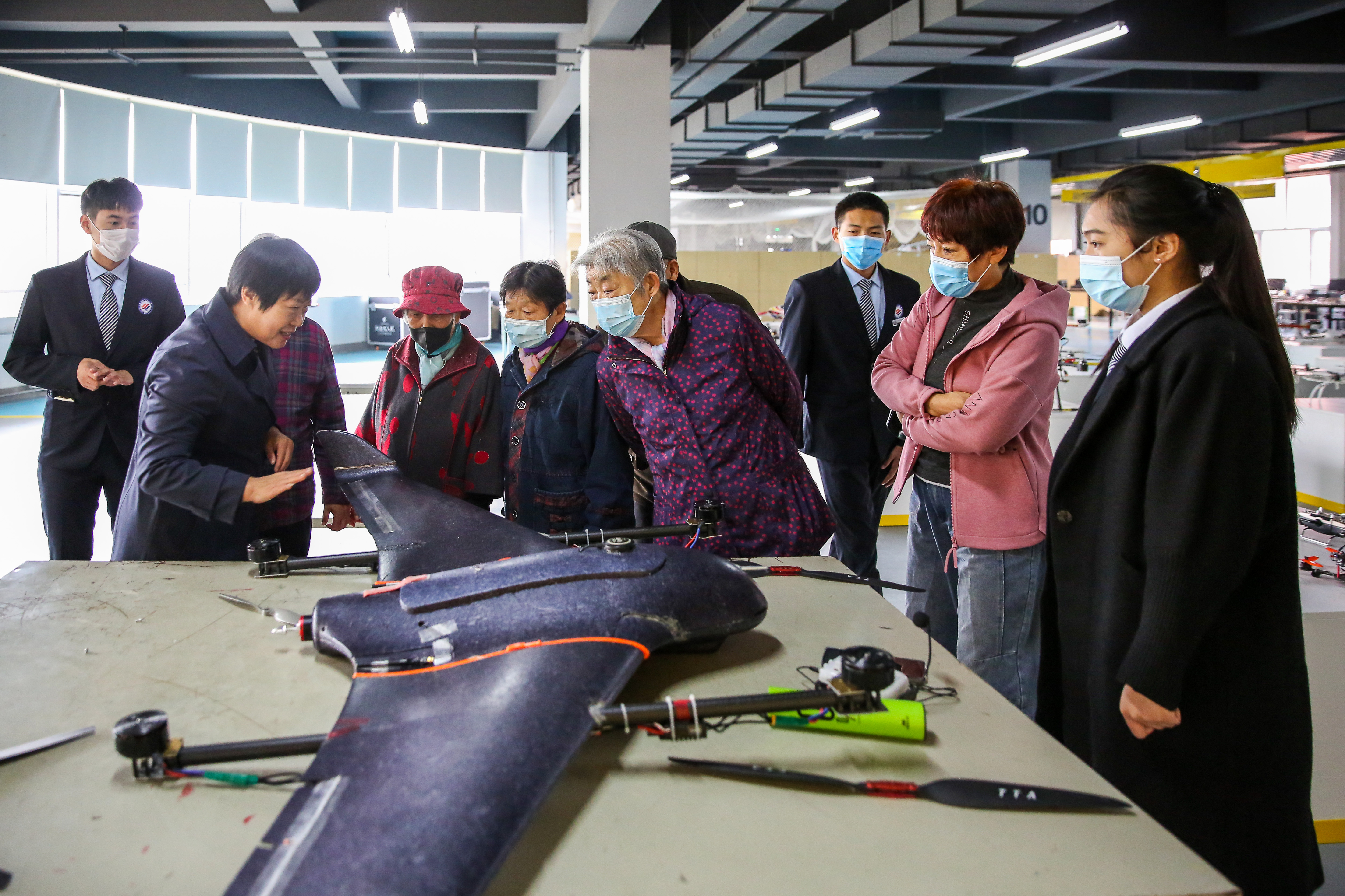 秋日的校园,天朗气清,景色宜人。至善广场,喷泉飞涌;田径场上,运动健儿英姿飒爽。老同志们兴味盎然、不时驻足,惊讶于一年来学院的变化之大。在智能制造系实训室,老同志们被一架架小型无人飞机、3D打印模型吸引,纷纷驻足,观赏询问。当得知学生利用自己学习到的技术,在疫情期间购买价值5万元的无人机进行植保,1个月的时间不仅将无人机的成本挣出,还净赚1万多元时,老同志们纷纷点赞。在现代管理系,走廊墙壁悬挂的师生绘画作品、充满童趣的手工制作、现代化的电钢教室与舞蹈房……用心的环境创设、散发的艺术气息,让老同志们眼前一亮,流连忘返。
