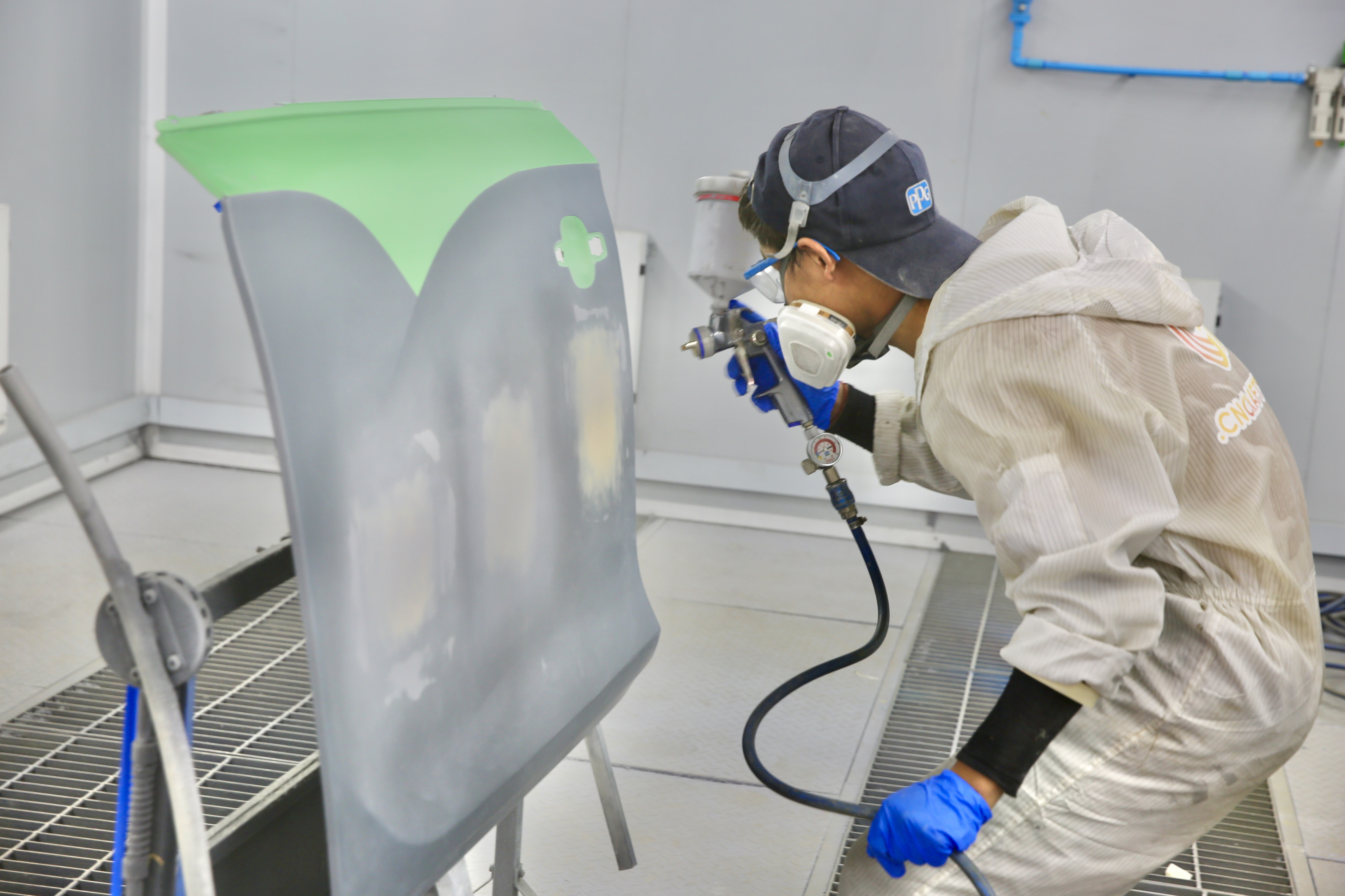 他的标志性的服装就是头戴鸭舌帽、口戴活性炭口罩、身穿厚厚的喷漆防护服,犹如疫情防控中的医护人员。医护人员救死扶伤,为人类消除病患。而黄超群所做的工作就是针对一些碰撞过的车和一些漆面有划痕的车以及漆面老化、漆面氧化变色的车做的一种漆面还原修复作业。就像外科手术动用的手术刀,拿着喷枪为汽车消除缺陷,让漆面磨损的汽车金属表面恢复到完好的地方一样,光亮如初。