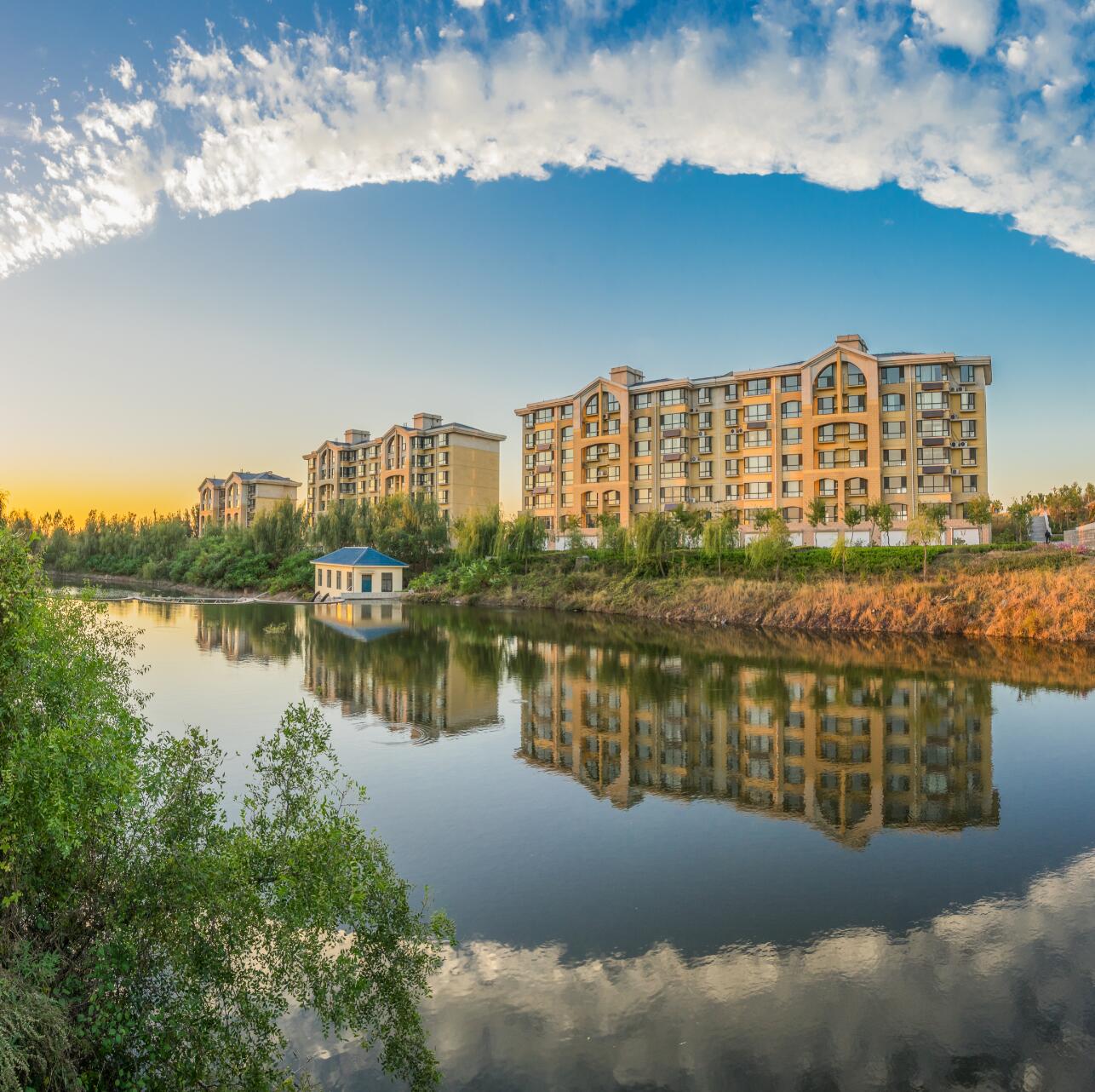 大美水院,风光秀丽,水泽丰沛,时见天光云影一鉴开,景色醉心怡人。
