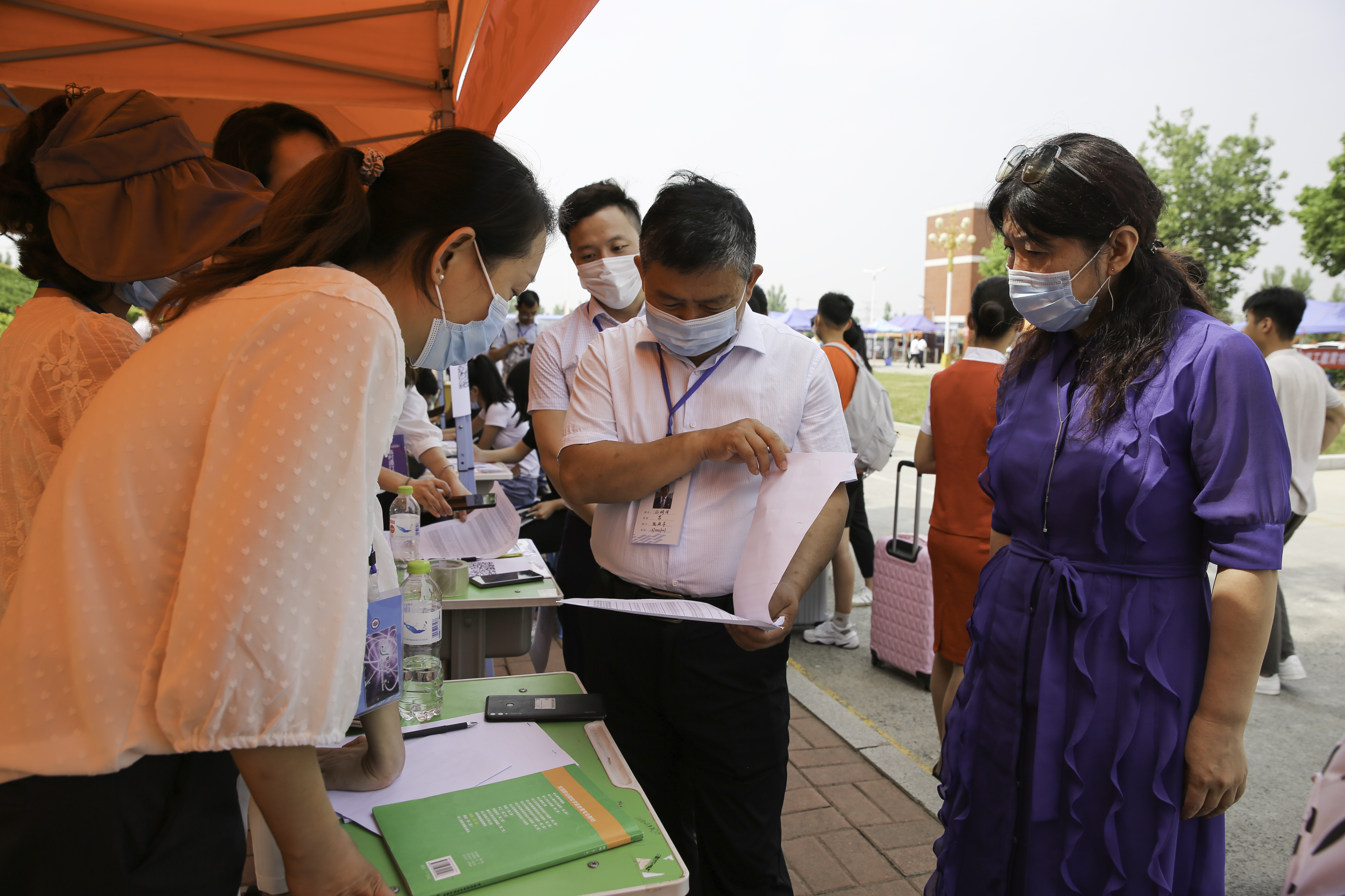 受疫情影响,山东水利技师学院今年春季新生开学时间比往年推迟,报到现场仍严格按照疫情防控要求进行。
