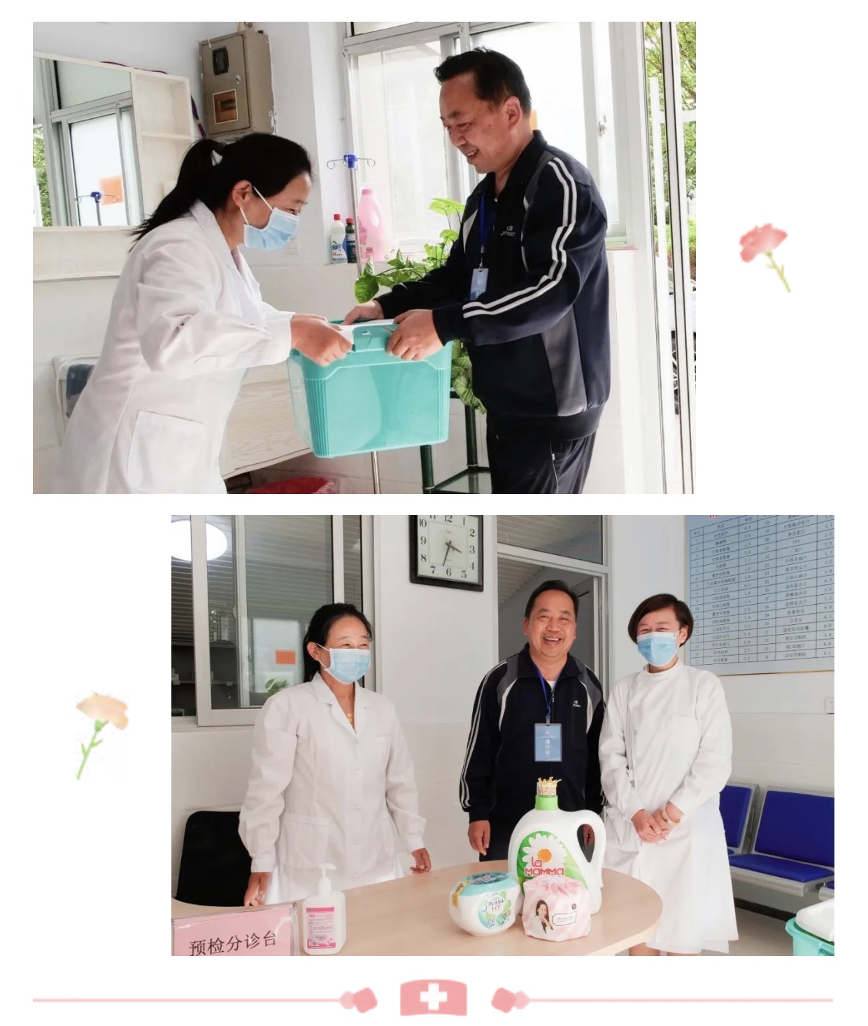 5月12日是国际护士节,山东水利技师学院副院长赵建东在工会相关人员陪同下,看望正在防控观察室及卫生所值班的吴迎春、王兴顺、许静等医务人员,为他们送上礼物和节日祝福。