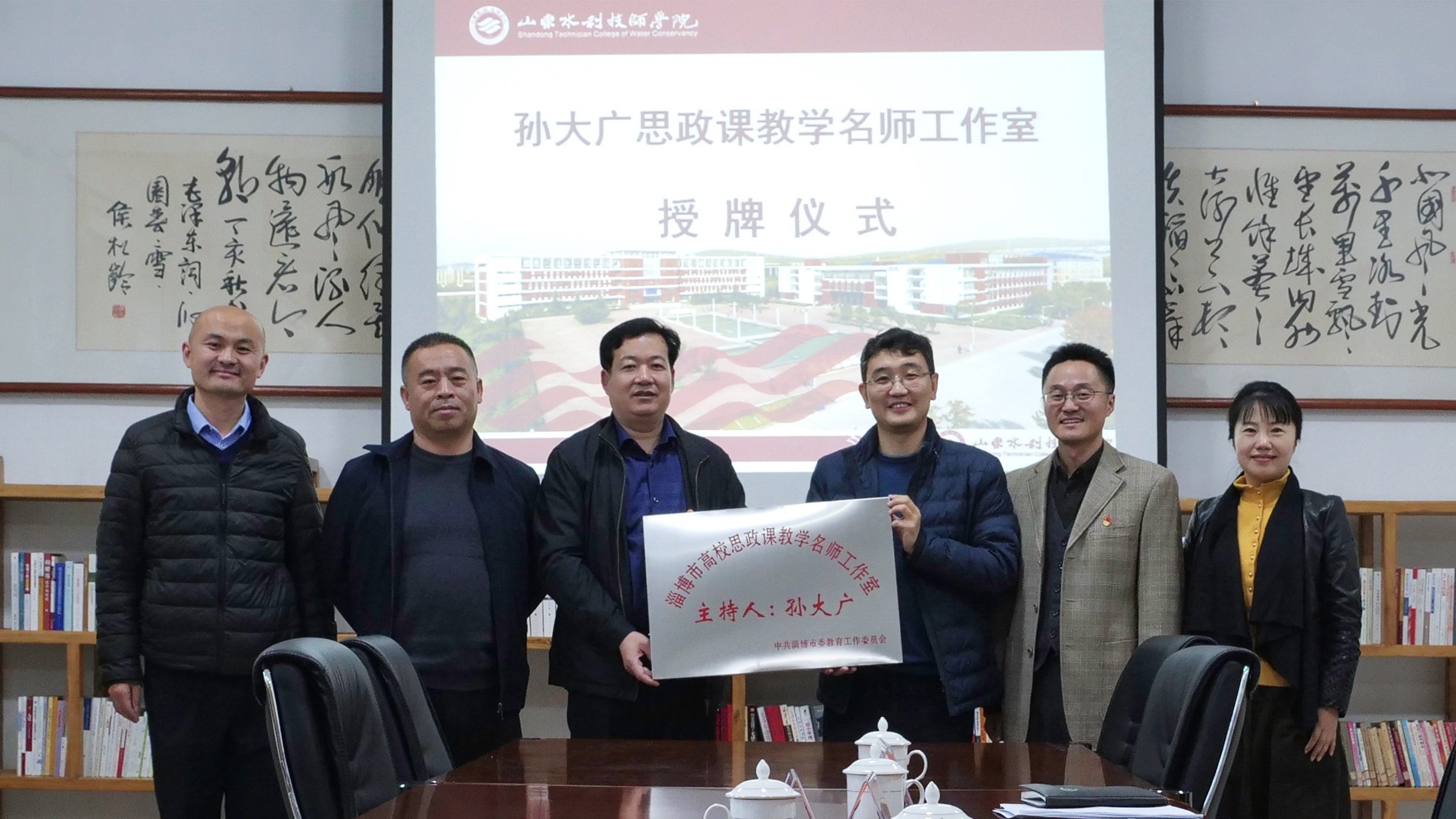 11月21日,淄博市教育局党组成员、副调研员张荣国,市委教育工委宣传思政科科长张新明一行到学院,为 “孙大广思政课教学名师工作室”正式授牌。学院党委副书记杨敬涛,思政课名师工作室主持人孙大广,宣传部副部长李华参加授牌仪式。