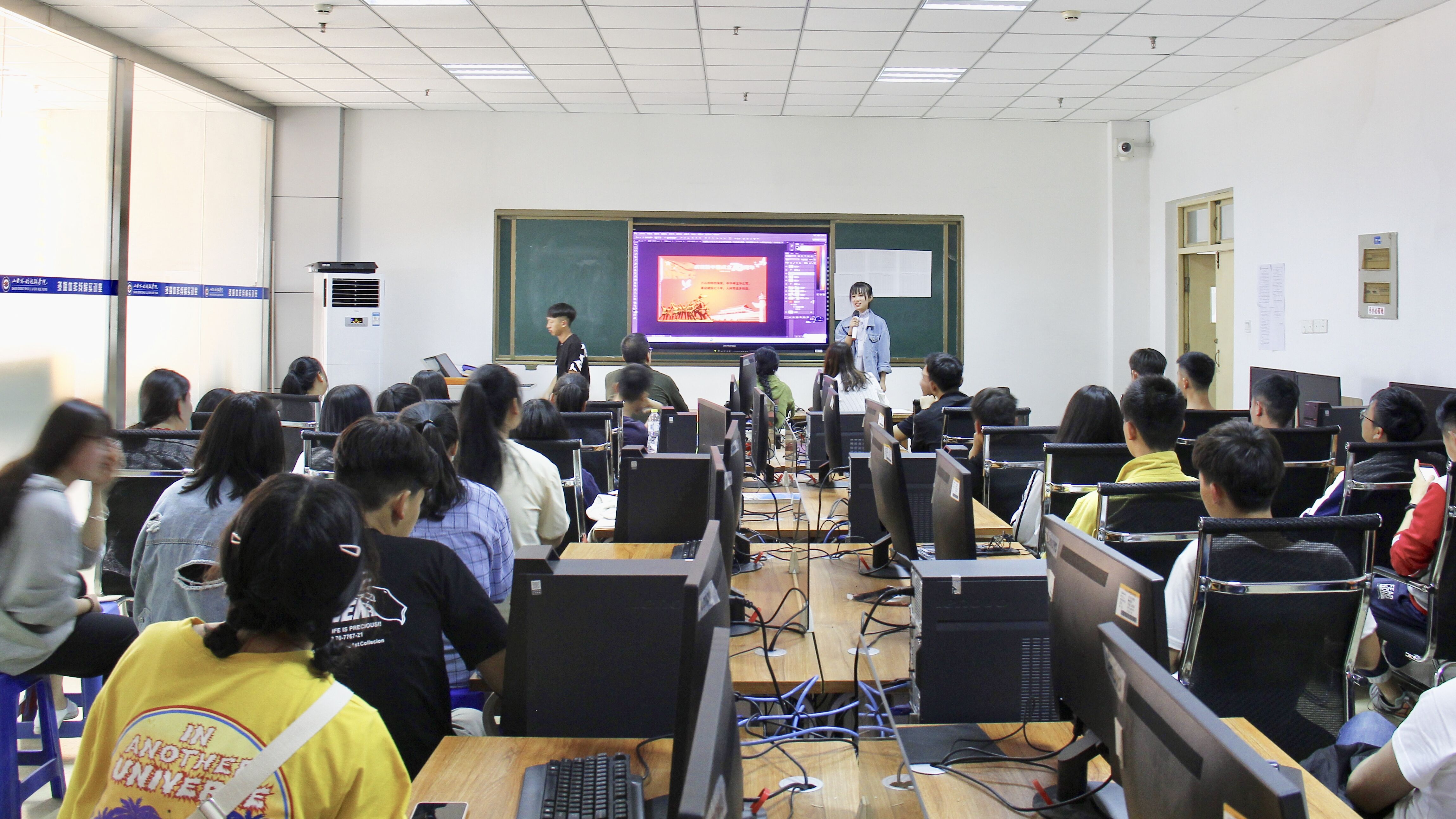 5月14日下午,信息技术系在图书楼多媒体实训室举行“我为祖国70周年献礼”平面设计大赛作品展示说明会。