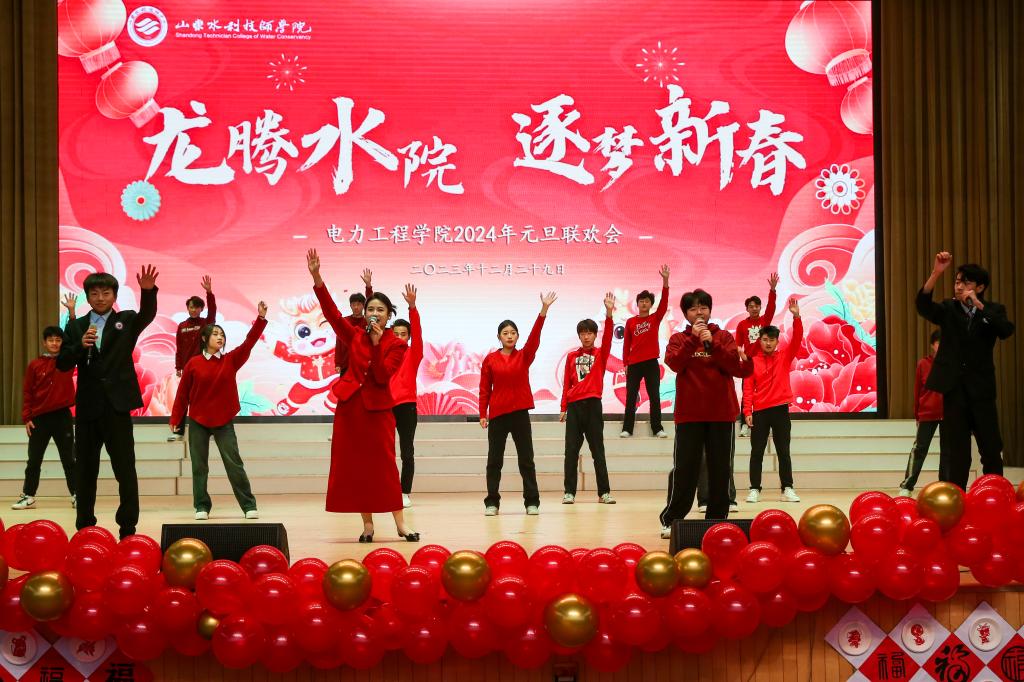 2023年12月29日,山东水利技师学院电力工程学院举办了以“龙腾水院,逐梦新春”为主题的2024年元旦联欢会。电力党支部、学工处、电力工程学院主要及相关负责人,各系学工组辅导员及电力学院师生1200余人参加活动。