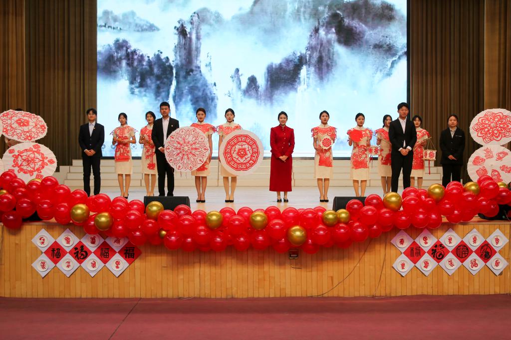 此次元旦联欢会共分为“壮丽山河绘新篇”“多彩社团展新颜”“逐梦电力扬新帆”三个篇章。师生同台用思政话剧、情景朗诵、歌舞等形式讴歌新时代、唱响新征程。《燃灯者》用音乐剧的形式,讲述了时代楷模张桂梅同志的先进事迹;由系部美育老师共同完成的剪纸走秀《传承》,让大家领略了传统文化的无限魅力;军官辅导员及教导队共同带来的盾牌操《假如战争今天爆发》,整齐划一的表演,再加上铿锵有力的歌声,展现了学院准军事化管理的卓越成效,表达了师生对新时代美好未来的憧憬……