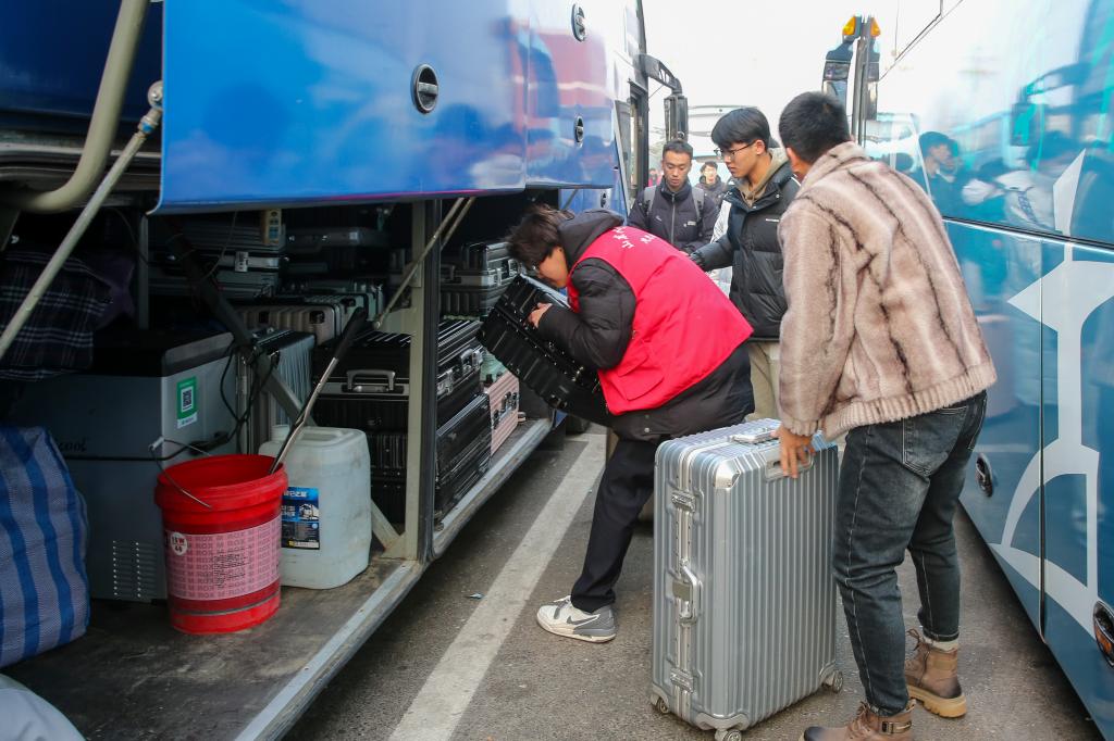 天刚蒙蒙亮,一辆辆爱心大巴即整齐排列在学院南门。带车辅导员一遍遍核对学生乘车信息,学生志愿者一次次帮助乘车学生搬运整理行李。学生工作处负责人对辅导员提出三点要求:上车前要提醒学生带好行李、随身物品,以防丢失;行驶途中,要提醒学生系好安全带;到站后,要叮嘱学生确认带好自己行李,不要遗忘个人物品,到家后一定要跟辅导员及时报备。
