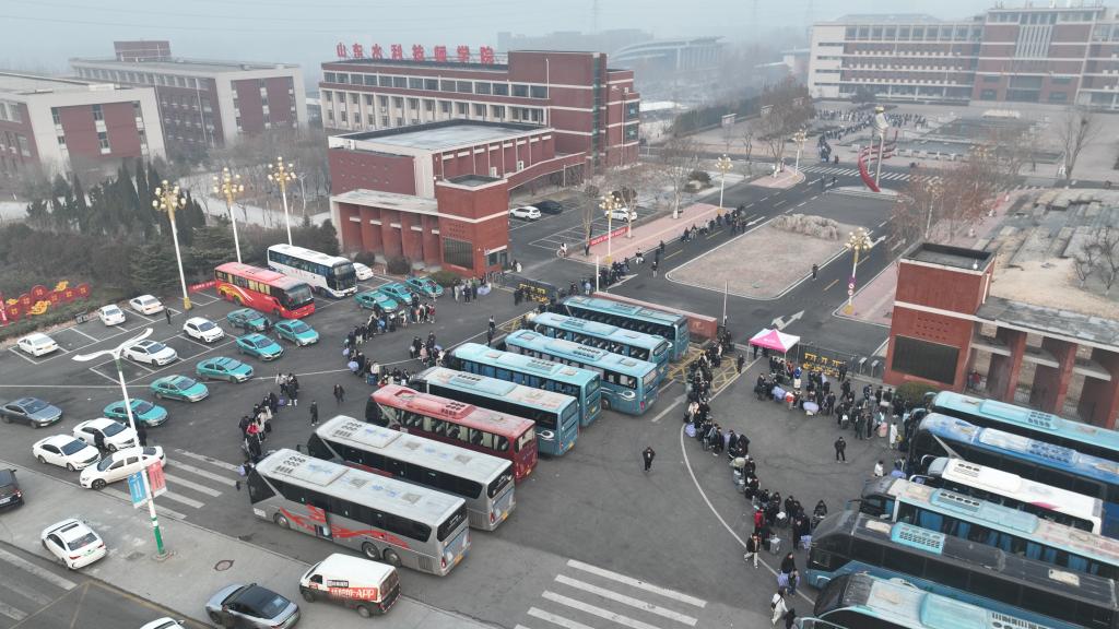 回家路遥遥,学子心似箭。1月13日,山东水利技师学院本着“以学生为本”的服务宗旨,分三个批次开通涉省内外13个地区的13条线路,面向近1400名学生开展第14次“点对点”接送活动。