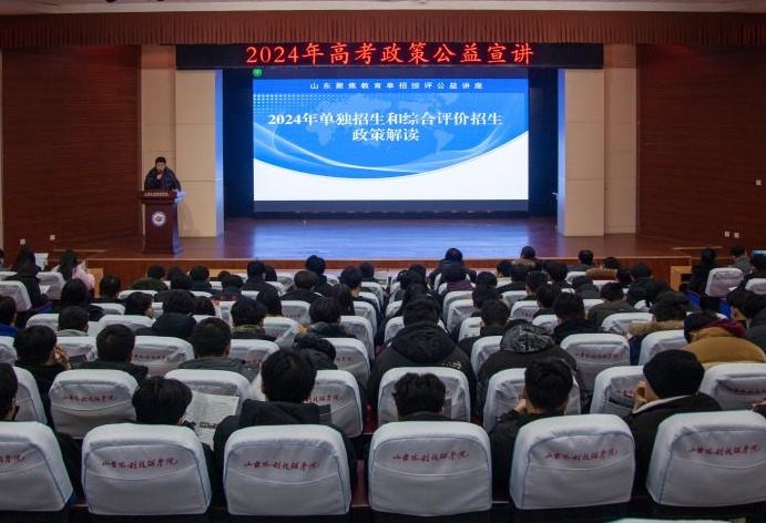 1月13日,山东水利技师学院通识教育部联合招生处共同举办2024年高考政策公益宣讲活动,邀请山东药品食品职业学院、山东外贸职业学院等10余所高校进校宣讲。