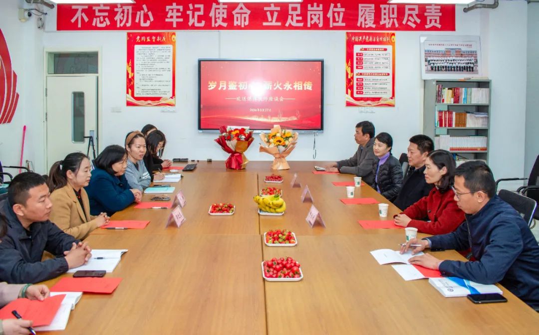 3月27日,山东水利技师学院学务党支部党员活动室内氛围和谐热烈,话语款款满溢深情,掌声阵阵传递祝福——一场欢送教师于瑛和吴迎春的退休座谈会在此举行。学院党委副书记郑金刚、副院长穆云丽代表学院,为她们颁发荣退纪念牌。宣传部、学工处主要负责同志,以及学工处教师代表参会。