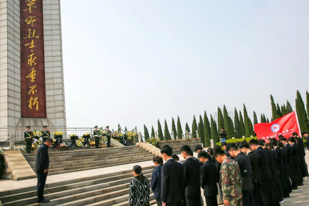 在革命烈士纪念碑前,全体师生列队肃立,敬献花篮,整理挽联,全体默哀,向那些为国家和民族英勇献身的革命烈士们,表达深切的缅怀和崇高的敬意。随后,师生党员、团员面对革命烈士纪念碑庄严宣誓,重温入党、入团誓词。
