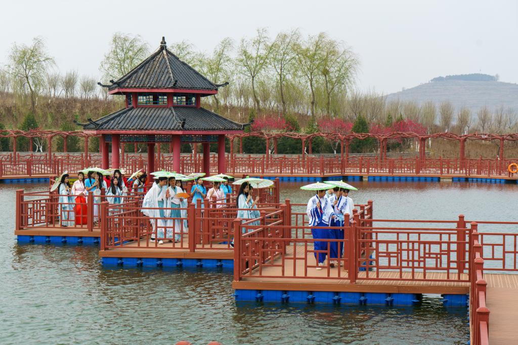 近日,“凤凰山杯”“中国最美乡村公园”西河摄影、抖音短视频大赛启动仪式,在淄川区西河镇镶月湖森林公园举行。山东水利技师学院传统文化社团受邀参加“中国最美乡村公园——碧桃节”活动,通过汉服表演及摄影、短视频拍摄等,展示学院师生的文化情怀和精神风貌。