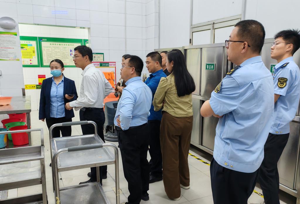 荆刚一行通过实地检查、资料抽查等形式,重点检查了学院食品安全责任落实、食品安全制度建设、餐饮规范经营、从业人员健康、原材料存储加工、食品留样等工作开展情况,对学院食品安全工作在制度建设、食材定点采购、设施设备管理等方面的工作给予充分肯定,并就相关工作给予了详细指导。
