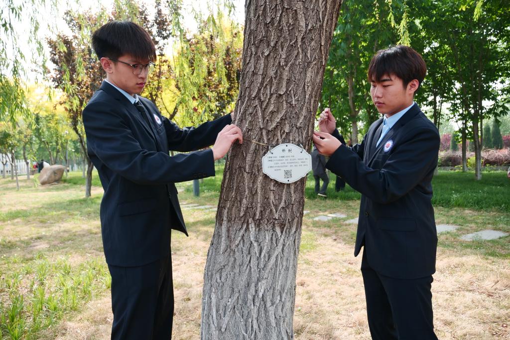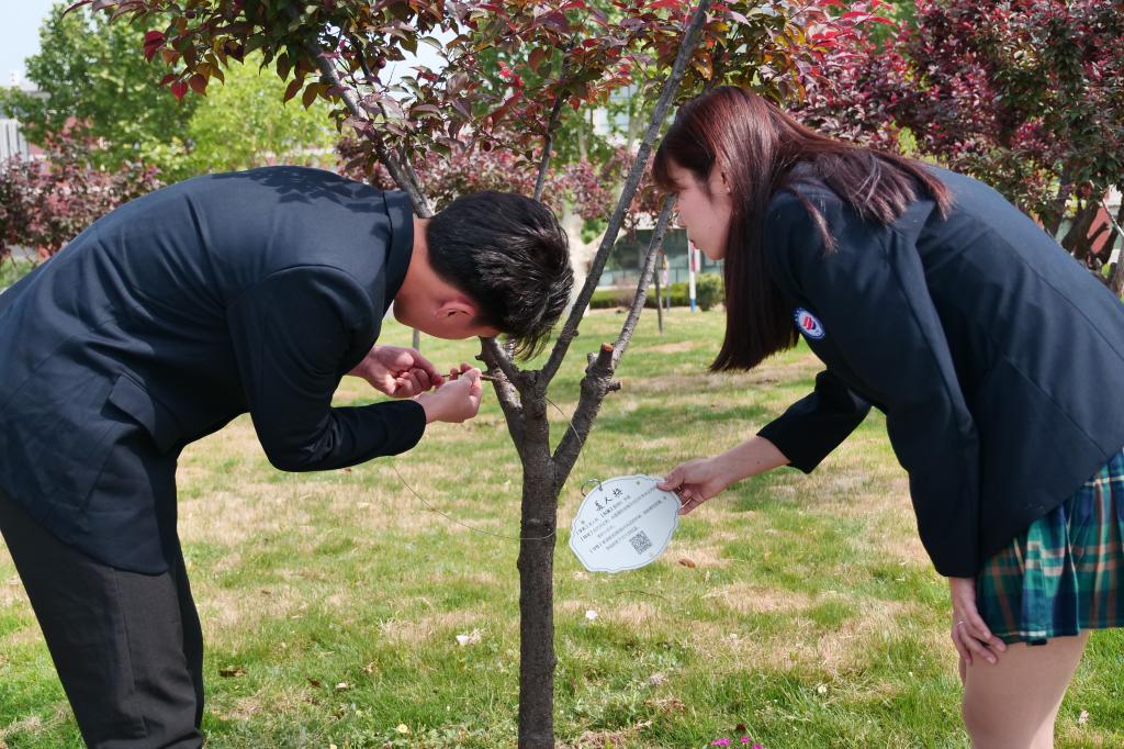 此次挂牌的树木种类涵盖国槐、流苏、白蜡、雪松、银杏、海棠、樱花等30余种。树牌上显示着植物的名称、科属、习性等信息,还印制着二维码,通过扫描可以获取更加全面的树木信息。一张张悬挂在树干、树枝上的树牌迎风飘荡,犹如一张张向人们展示身份的“名片”,吸引着过往的师生驻足观赏、扫码查阅。