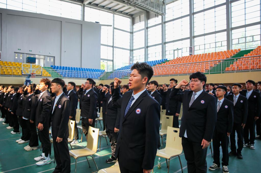 学生工作处、团委负责人、各系部团总支书记,以及2024年上半年新发展团员和各系部老团员代表共计150余人参加仪式。