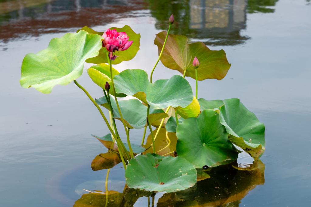 今日夏至,伴随着热辣滚烫的风,毓秀塘的荷花与睡莲各相争艳。50盆郁郁葱葱、亭亭玉立的荷花,在学院毓秀塘内竞相开放,星星点点粉色花散来,与水面的睡莲一起,相映成趣,迸发出抚慰人心的宁静与安逸。