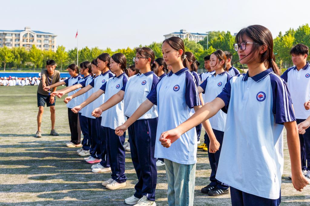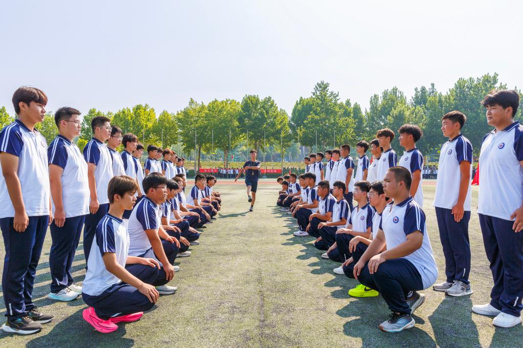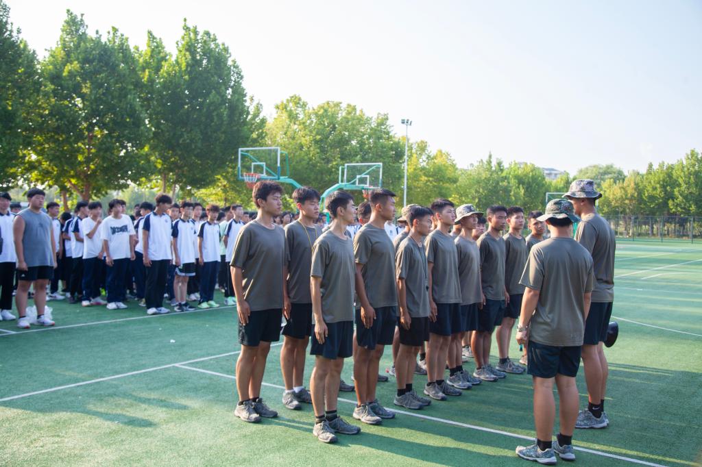 气温迅速提升。但新生们巾帼不惧烈日,男儿笑对骄阳,在酷热中坚持,在汗水中挺拔。教官们以严格的标准和专业的态度,从最初的整齐报数到稍息、立正、跨立等动作,每一项都要求精确到位,体现了军事训练的严谨性。而新生们逐渐齐整的步伐、逐渐规范的动作,还有那响亮有力的口号声,则彰显出相互配合、群策群力和“一花独放不是春”的团队精神,展示出他们高昂的士气和进步的渴望。