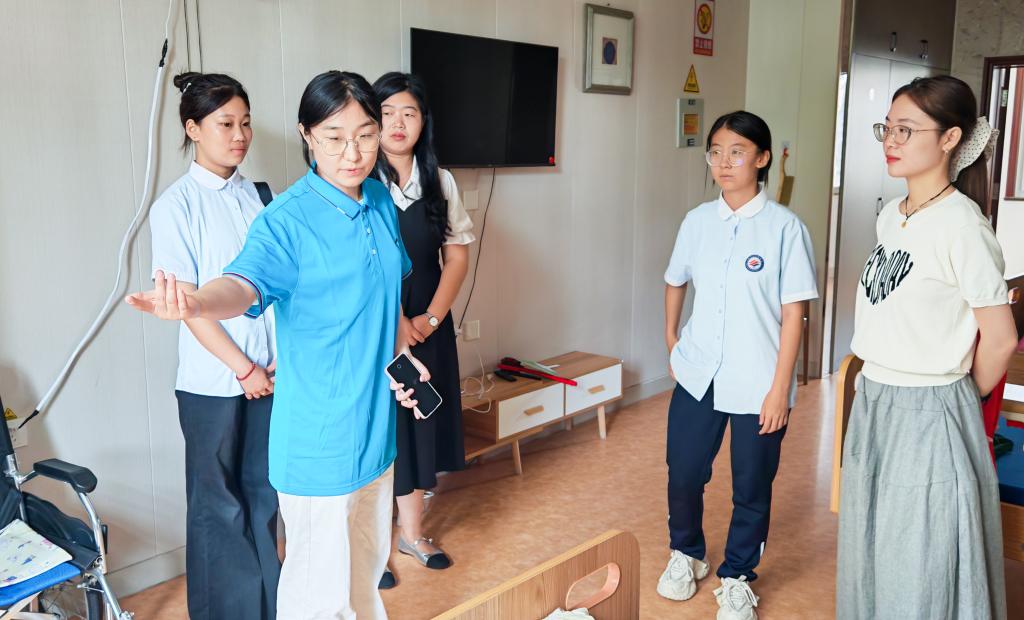 随后,在该养老中心负责人陪同下,康养产业学院一行人实地参观了该养老中心的居住区和活动场所,并与护理人员、入住老人亲切互动。通过沉浸式体验,让师生对养老中心的运营管理、服务流程及智慧养老技术应用,有了更直观的认识,给予探索校企合作新路径以启迪。