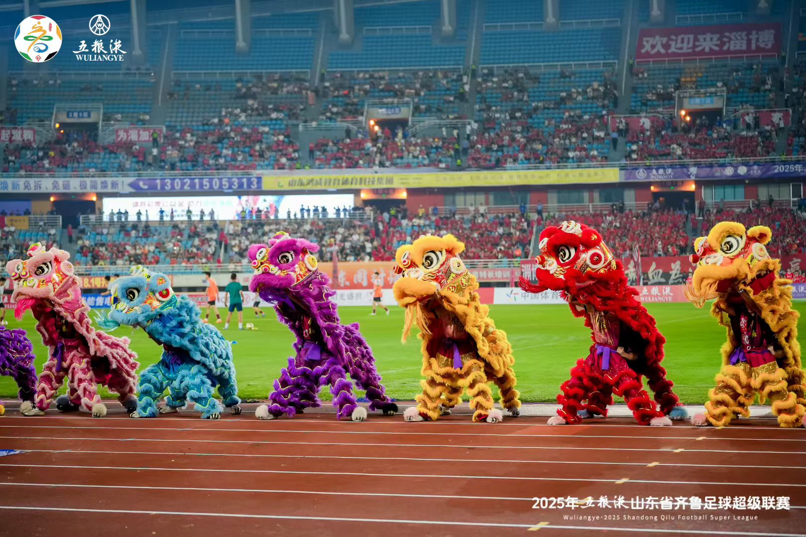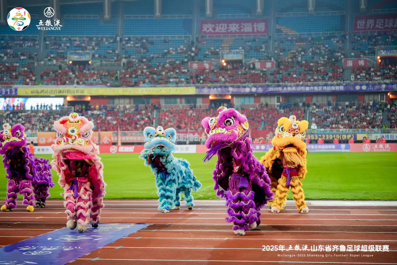 9月13日,2025年山东省齐鲁足球超级联赛在淄博市体育中心开幕。学院龙狮社团受邀表演的气势恢宏的文体节目《南狮》,赢得现场超两万观众的如潮喝彩。