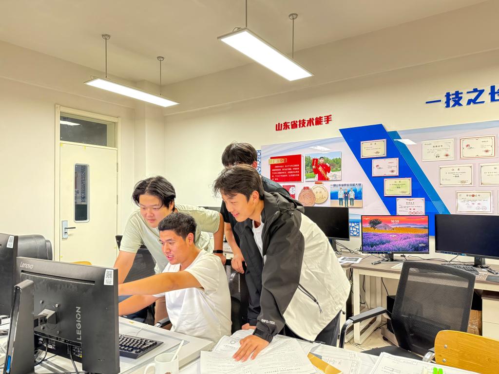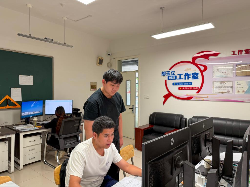 “标高标注要精准到毫米,线型粗细不能含糊!”电脑前,李瑞浩俯身指着学弟的图纸,语气耐心又认真,仿佛回到了自己备赛的时光。彼时,学长们倾囊相授的场景历历在目。如今,他也成了经验传承人。