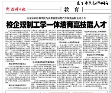 山东水利技师学院立足于服务区域经济,进一步深化产教融合校企合作,加速实施校企双制、工学一体新型学徒制育人模式,校企共育高技能高素质应用型人才。学院汽车维修专业是山东水利技师学院的传统优势专业,2004年被评为全省技工院校名牌专业,2008年被列入“山东省技工院校百强专业建设名单”,2013年被山东省人社厅确定为一体化省级试点专业。从2012年6月,学院与山东唐骏欧铃汽车制造有限公司合作成立了“山东水利技师学院唐骏汽车学院”,校企双方联合成立“学生实践课程教学基地”,共同培育技能人才。这不仅是山东水利技师学院推动校企双制的一项新尝试,更是淄博市校企合作和产教深度融合、资源共享、加快技能人才培养的典范。