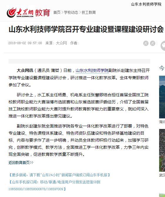 大众网讯(通讯员 蒲哲)日前,山东水利技师学院副院长赵建东主持召开学院专业建设暨课程建设研讨会,研讨推进一体化教学改革。全体专兼职教师参加了会议。